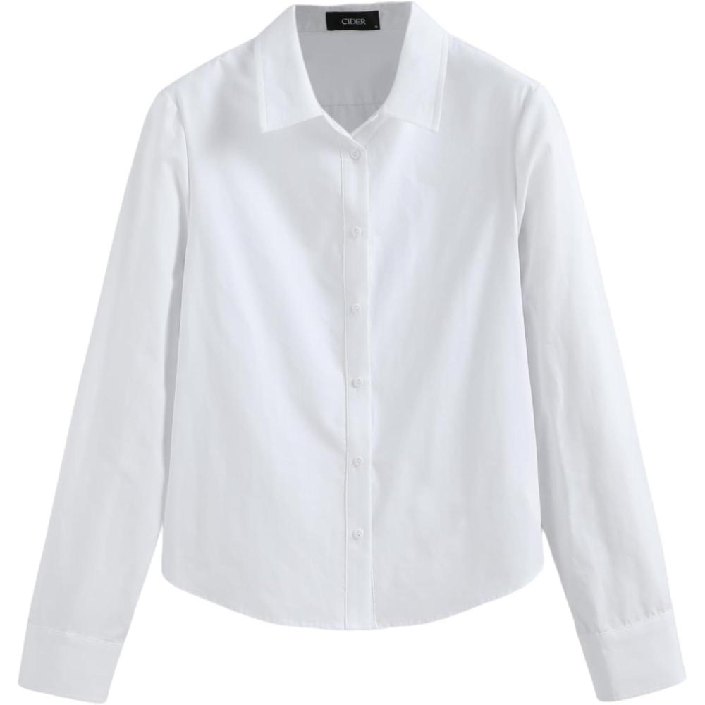 CIDER Collar Button Up Long Sleeve Shirt(White)