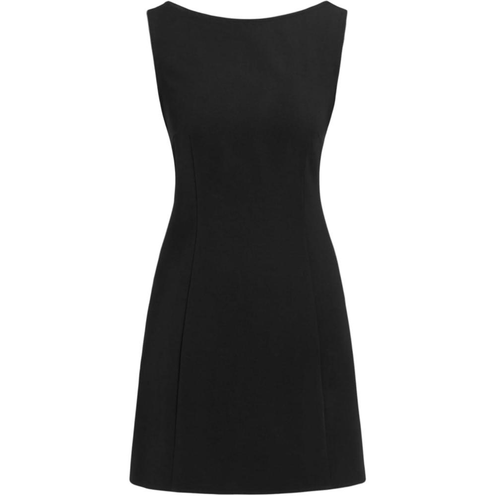 CIDER Boat Neck Solid Mini Dress(Black)