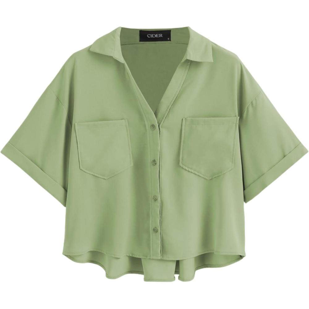 CIDER Collar Pocket Short Sleeve Crop Blouse(Green)