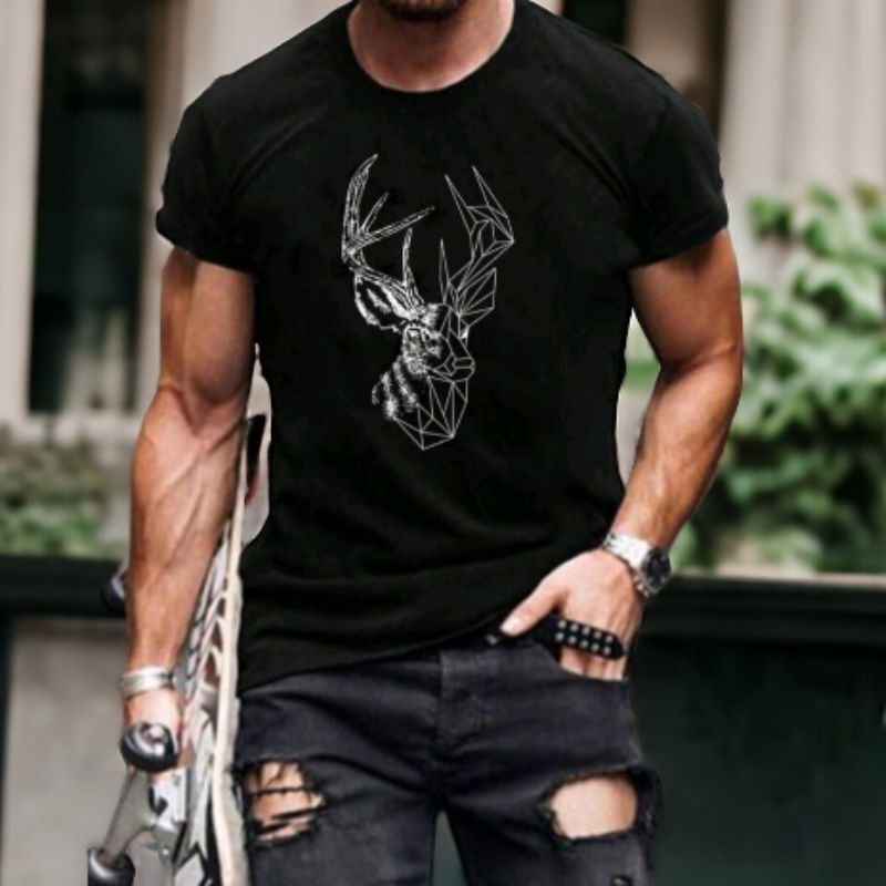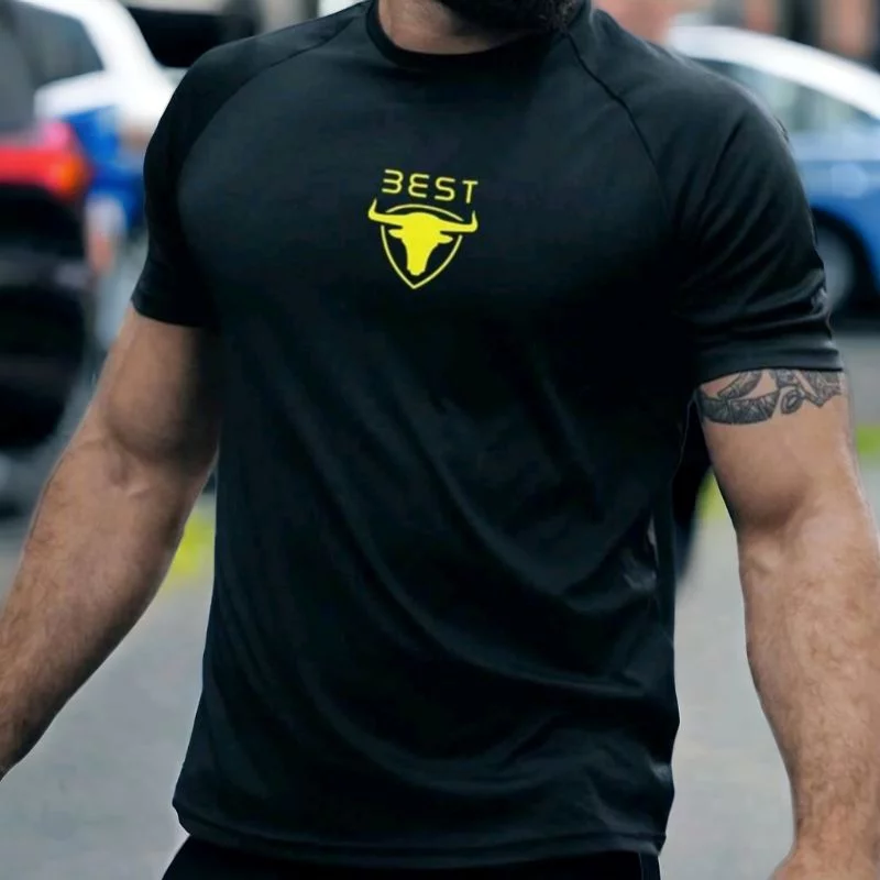 Men’S Bull Head & Letter Print T-Shirt