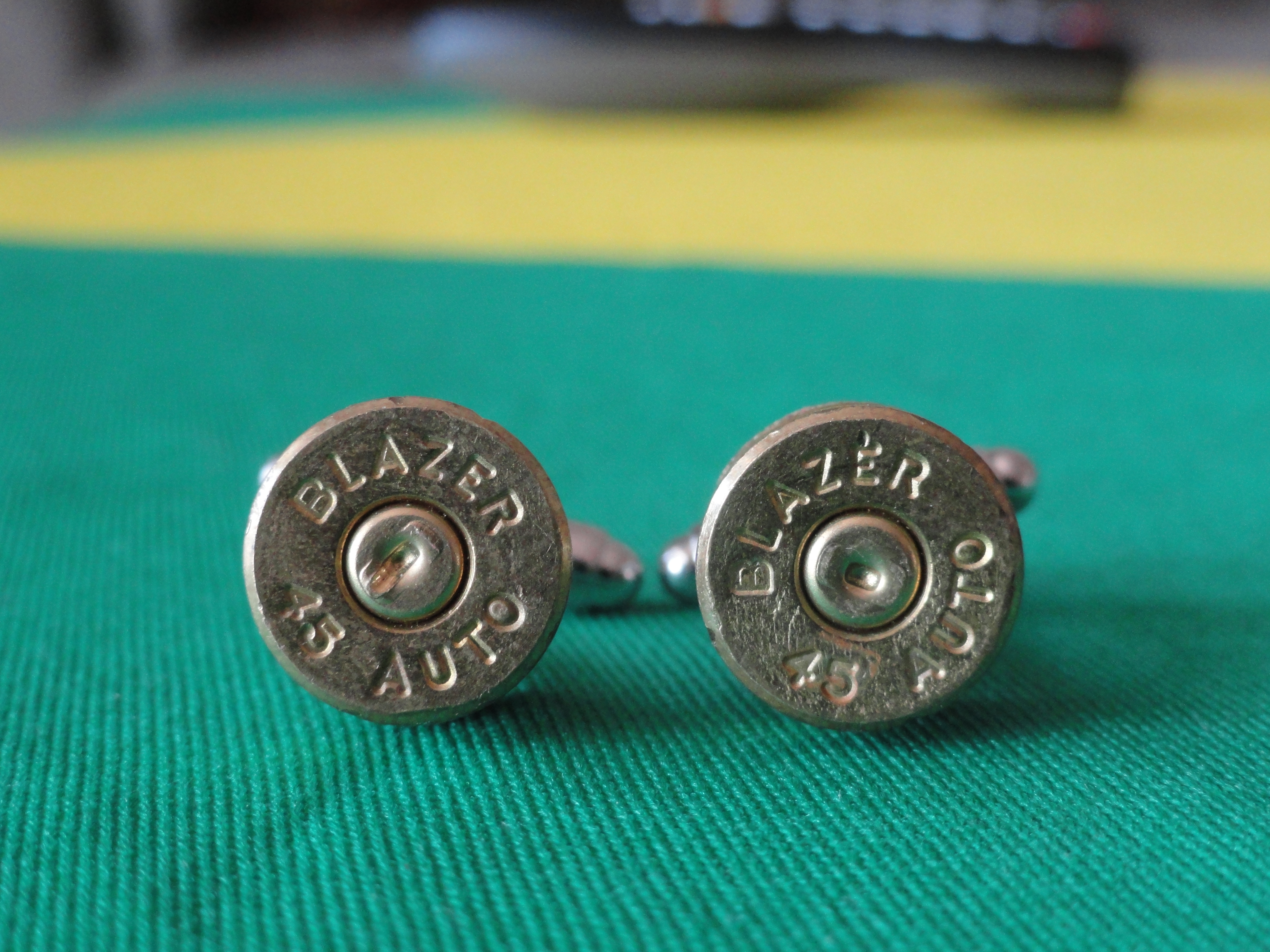 Steel .45 Caliber Cufflinks, Lapel Pins, Tie Bars, Earrings, Jewelry and Accessories